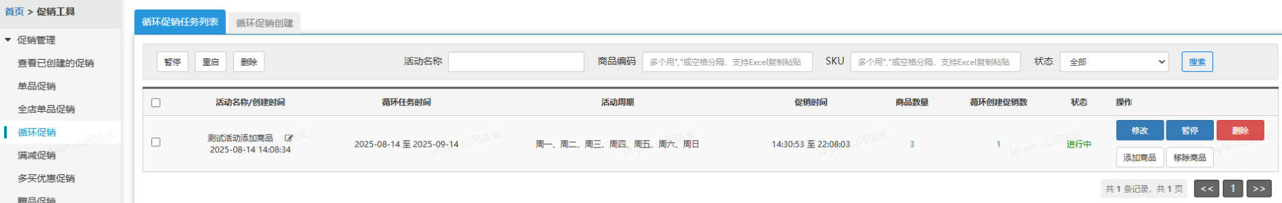 在循环促销任务列表可以查看创建的任务