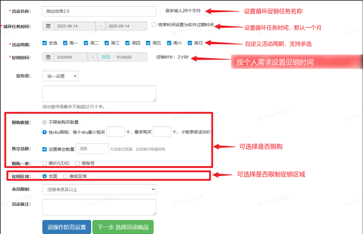 步骤①:根据自身需求配置促销内容