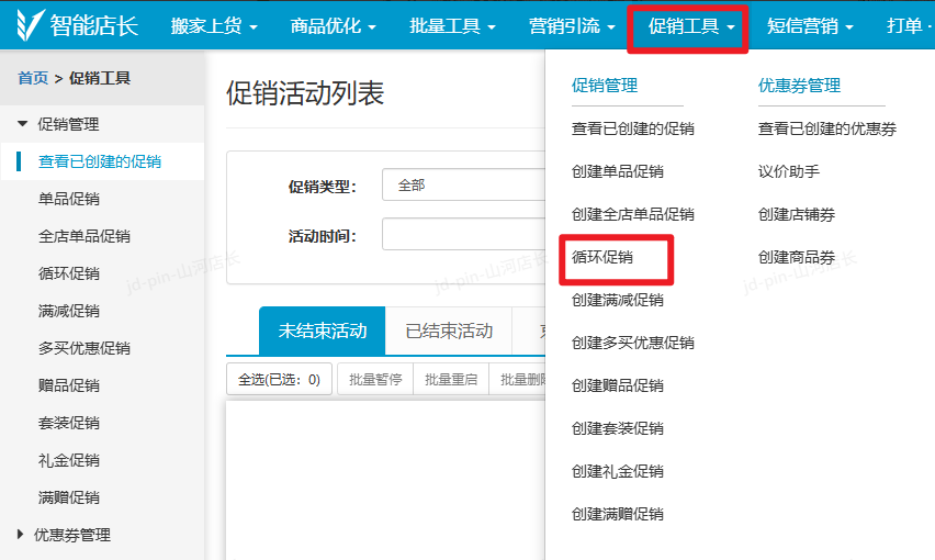 功能路径:促销工具--循环促销