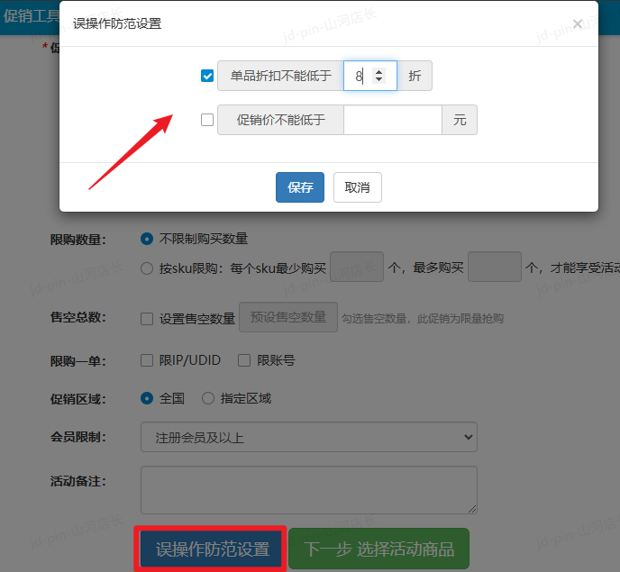 设置误操作防范后,可以一定程度避免商品价格太低导致资损