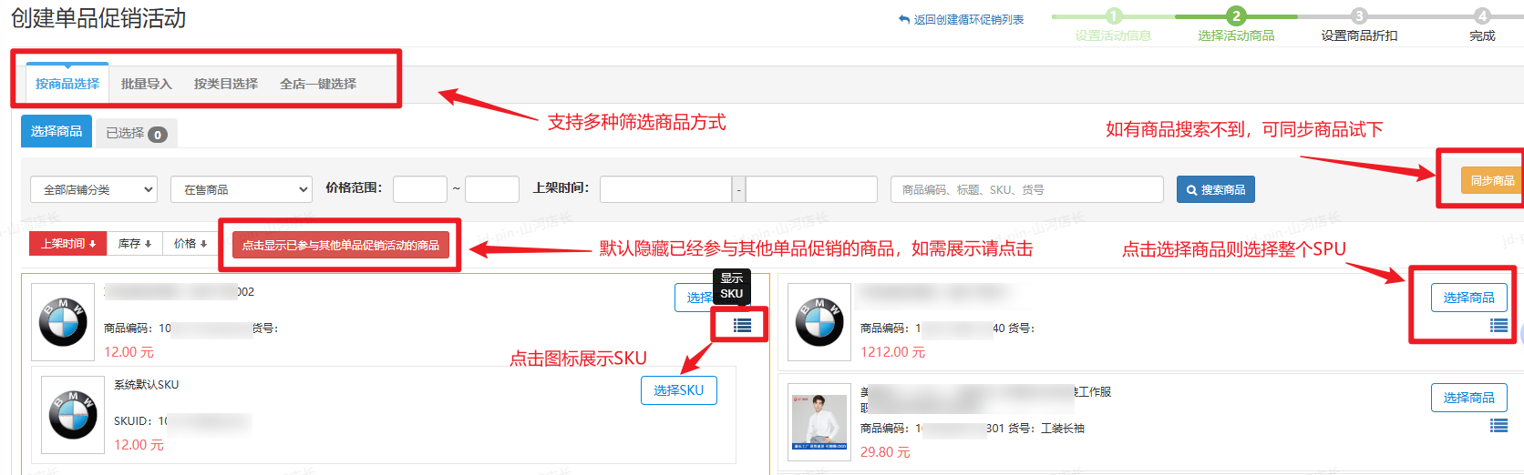 步骤②:选择活动商品
