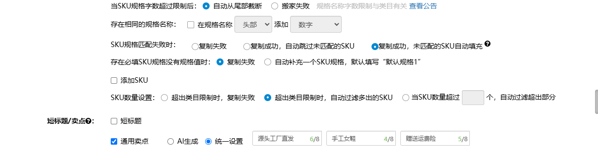 注意点:使用授权复制,默认复制来源的商家SKU, 无需再勾选生成商家SKU