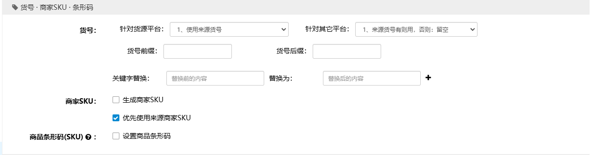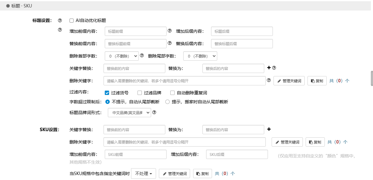 可针对来源商品的标题、sku规格名称、短标题或者卖点进行预设处理