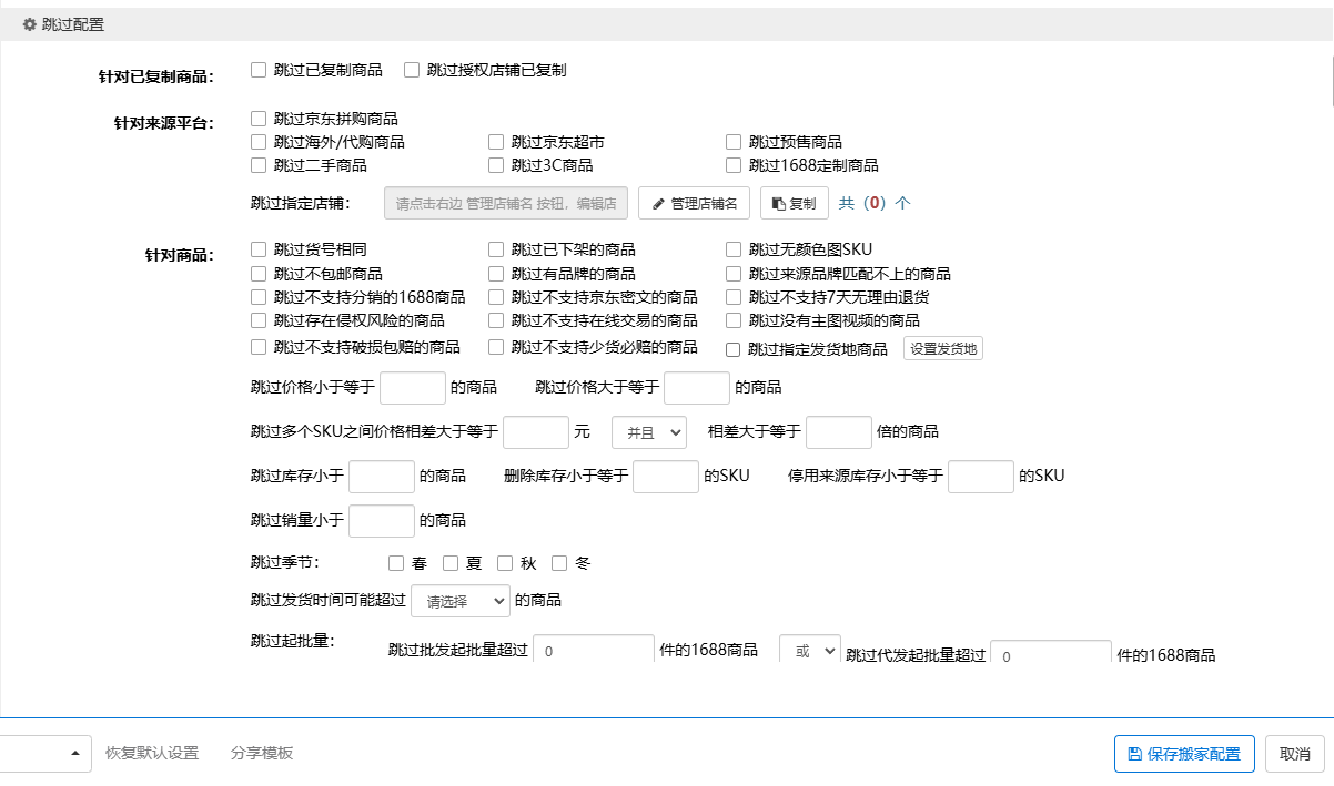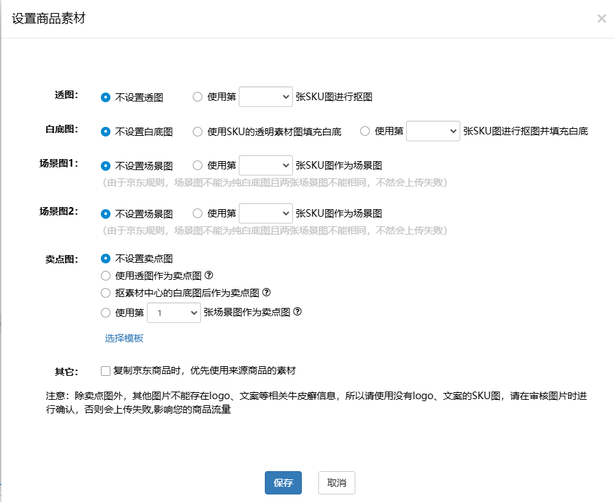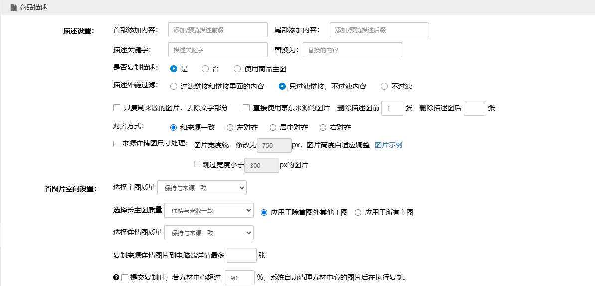 如对商品图片质量没有太高要求,并且复制的商品数量巨大,可设置省图片空间