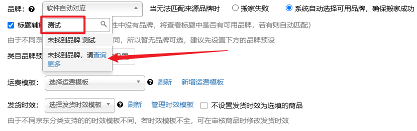 注意点:品牌接口有可能出现延迟,如实际已经审核通过的品牌没有在软件搜索到,可点击查询更多
