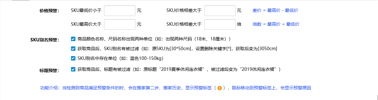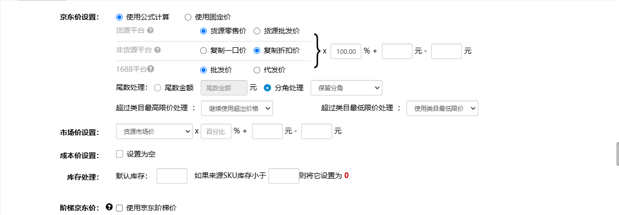 针对商品的价格、库存进行预设置,如设置200%,即价格翻倍