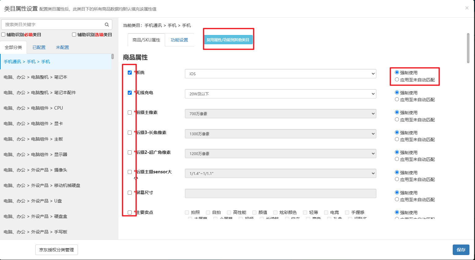 由于平台规则不同,可能存在来源的商品属性与京东属性不一致的情况,可提前配置商品属性/SKU属性进行映射匹配