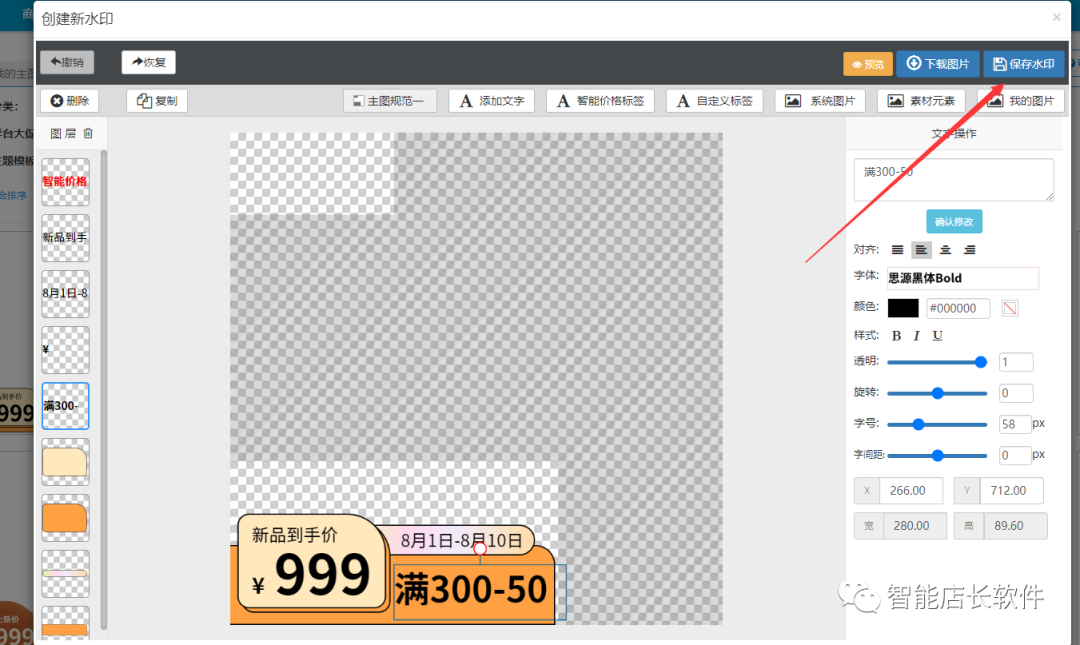 点击保存会跳出水印配置界面,设置好水印模板