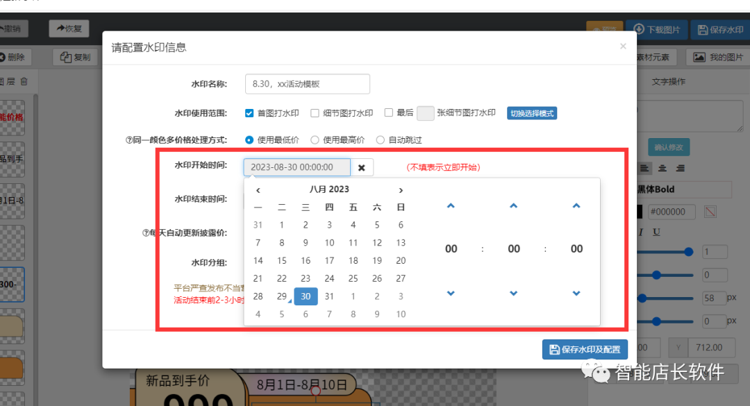 智能店长水印功能支持定时设置不同时间段的水印模板,减轻工作压力。
