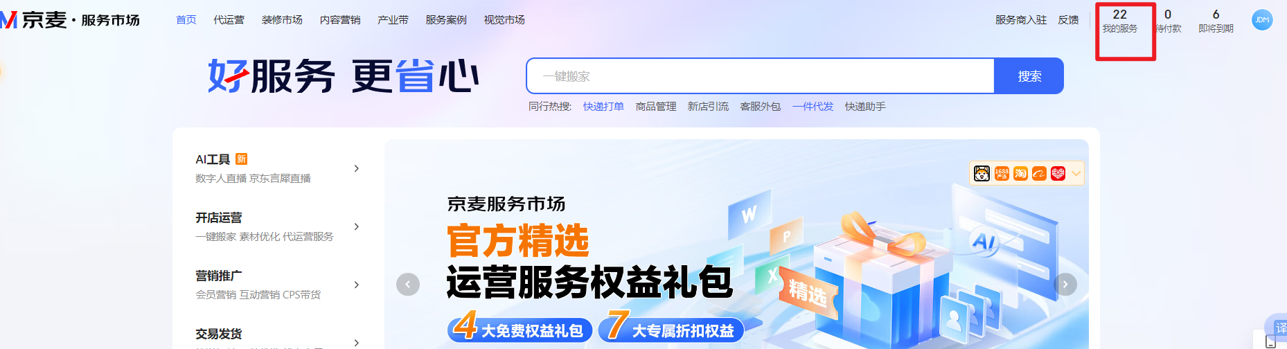 1 、使用主账号登录京东服务市场http://fw.jd.com/,登录以后点击我的服务,进入服务管理中心。